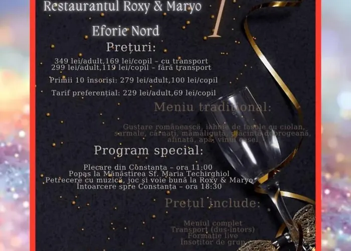 A 3 csillagos hotel központi helyen, a Plaja Belona területétől csak 1 km-re van. A Faleza Eforie Nord elérhető szomszédságában a szállástól. A környékbeli szórakozási lehetőségek közé tartozik a Hotel-Apartments Roxy&Maryo mindössze 10 percnyi sétára lévő Teatrul de Vara Eforie Nord. Az Észak-Eforie városi hotel rövid útra található a Statie autobuz buszpályaudvartól.